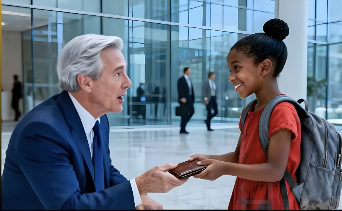 Sophie nodded, carefully unzipping her patched backpack, and presented the wallet with care. “I found this under a bench. I opened it to find your name. My mother always says that keeping something that doesn’t belong to you is equivalent to stealing, regardless of the necessity.”