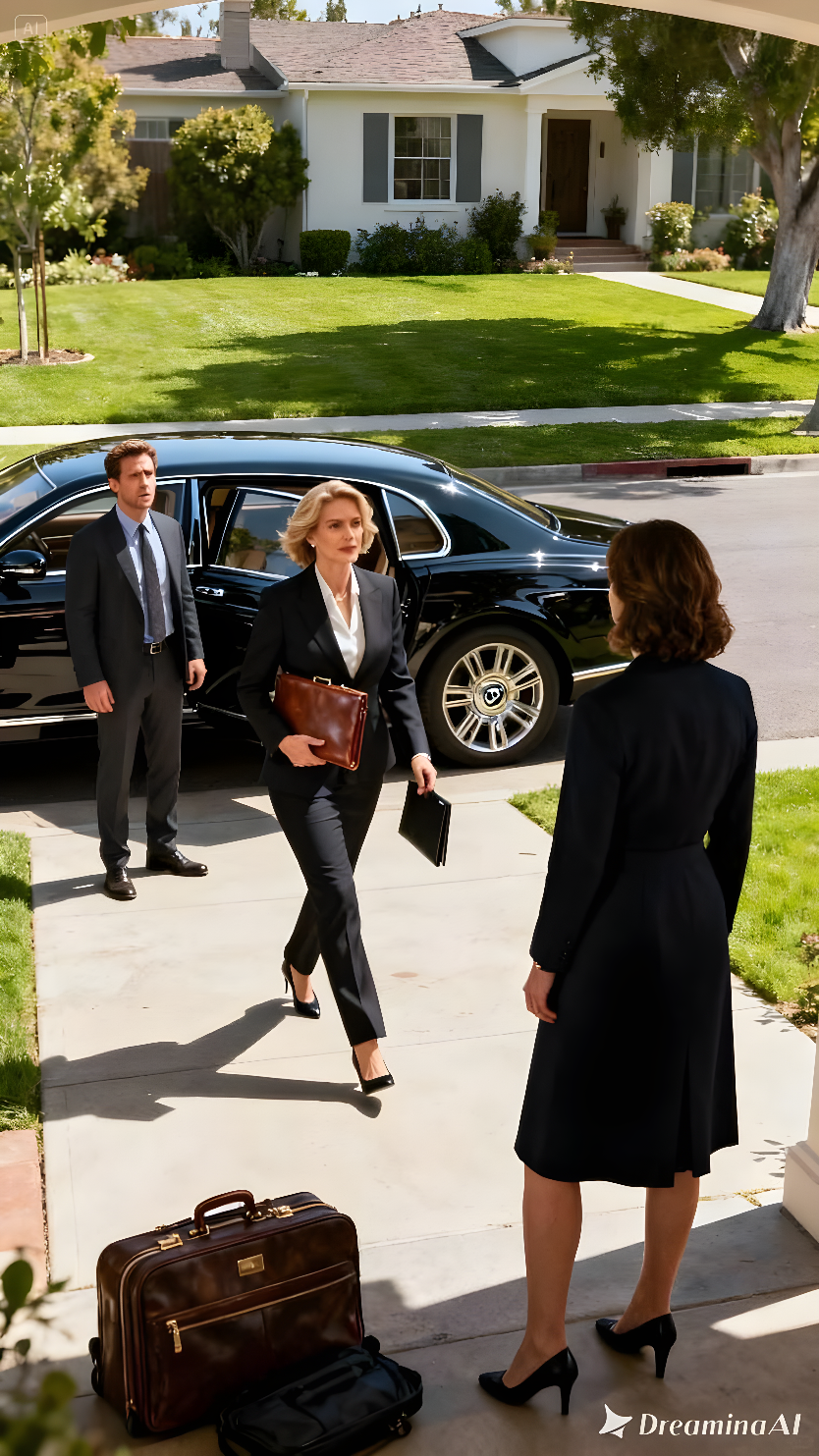 Helen, the Chairman’s assistant, disembarked from the back seat. She wasn’t just a “secretary”; she was a woman in her fifties, exuding understated, lethal competence. She approached the stone pathway, gracefully stepping around my discarded suitcase without a second glance, and pressed the doorbell.